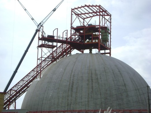 1,658 toneladas de suministro, fabricación y montaje de estructuras metálicas hasta alturas de 82 m empleando todo tipo de perfiles estructurales.