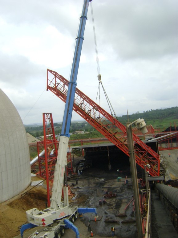 556 toneladas de suministro, fabricación y montaje de tolvas, ductos y chutes de formas diversas, tamaños y pesos.