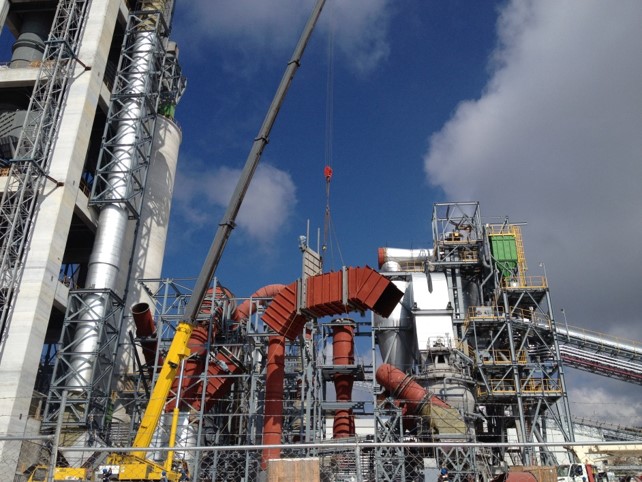 5,437 toneladas de montaje de equipos mecánicos para una línea de producción de cemento consistentes en plantas de trituración, transportadores de banda, transportadores de placas, reclamadores de material, apiladores, molinos horizontales de bolas, molinos verticales de rodillos, equipos mecánicos en silo de cemento, elevadores de cangilones, colectores de polvo, alimentadores, ciclones y tolvas del precalentador, quemadores, calcinadores, horno rotatorio, enfriadores, ensacadoras, paletizadoras, equipo para carga a granel a camiones, compresores, ventiladores, motores, reductores, tolvas, chutes, bombas, instrumentación.